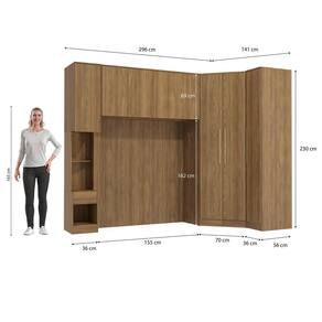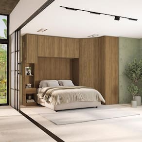 Para quem sempre sonhou com um quarto planejado, o Modulado Adapt da Kappesberg é a escolha certa. Produzido em MDP de 15mm, o que proporciona mais firmeza, robustez e qualidade, o Combo CB1436 é ideal para quem busca otimizar espaço e garantir beleza e funcionalidade no dia a dia. Com 2,30m de altura, 4,87m de largura e 56cm de profundidade, o combo traz soluções funcinais e muito espaço interno, além do guarda-roupa de canto obliquo, que permite composições modernas um aproveitamento perfeito.