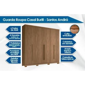 GUARDA ROUPA CASAL 6 PORTAS (2 RIPADAS) E 4 GAVETAS C/ PÉS BURITI JATOBÁ - SANTOS ANDIRÁ