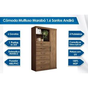 CÔMODA DE QUARTO MARABÁ 1.6 C/ 1 PORTA E 6 GAVETAS JATOBÁ - SANTOS ANDIRÁ