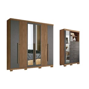 Guarda Roupa +Cômoda QC354 Jatobá/Grafite - Santos Andirá