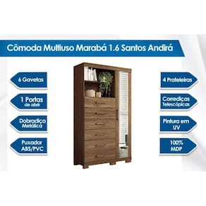 Dimensões(Cm): Cômoda Marabá 1.6 c/ 1 Porta c/ Espelho 6 Gavetas e Pés