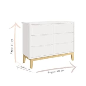 Cômoda Infantil 6 Gavetas Classic Branco Acetinado com Pés Natural Reller