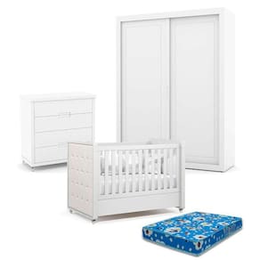 Quarto de Bebe 2 Portas Tutto New com Capitonê New Boucle e Gaveteiro Branco Acetinado com Colchão Ortobom - Matic