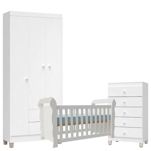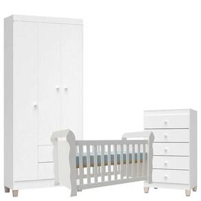 Quarto de Bebê 3 Portas com Gaveteiro Ternura Baby e Berço Lara Branco Brilho - Incorplac