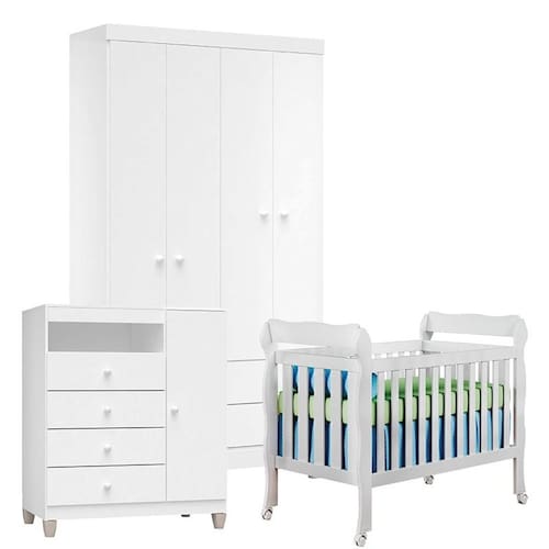 Mamãe e Papai que estão a procura dos Móveis perfeitos para o quartinho do Bebê! Aqui você encontra qualidade e bom preço! Apresentamos o Quarto de Bebê 04 Portas Ternura Baby com Berço Lila na cor Branco Brilho desenvolvidos pela Incorplac e Carolina, contam com um lindo design, ótimas repartições, amplo espaço interno para melhor organização das roupinhas, sapatinhos e acessórios do seu Bebê. Confira as características e aproveite!