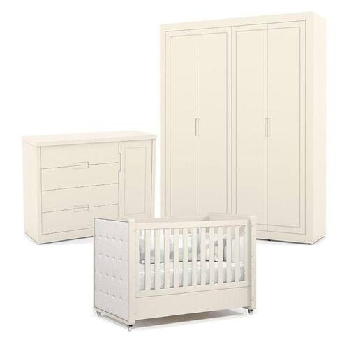 Quarto de Bebe 4 Portas Tutto New Off White com Capitonê New Boucle - Matic