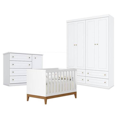 Quarto de Bebê Americano 4 Portas com Berço Americano Flip Branco Acetinado Reller - Henn