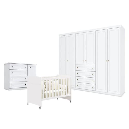 Quarto de Bebê Americano 6 Portas com Berço Americano Evolution 4 em 1 Branco Acetinado Reller - Henn