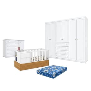 Quarto de Bebê Americano 6 Portas com Berço Americano Multifuncional Formare Branco Freijó - Matic com Colchão TendTudo.