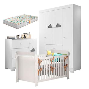 Quarto de Bebê Ane com Berço Americano Lara Branco Brilho com Colchão Gazin Phoenix Baby