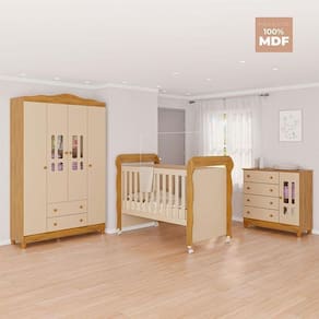 Quarto de Bebê Ariel 4 Portas com Berço Americano Mirelle Off White Bétula Carolina Baby