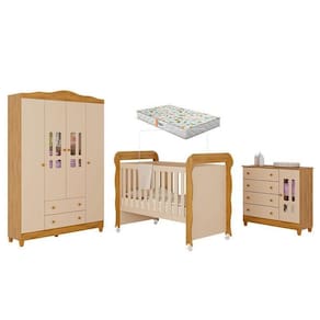 Quarto de Bebê Ariel 4 Portas com Berço Americano Mirelle Off White Bétula com Colchão Gazin Carolina Baby