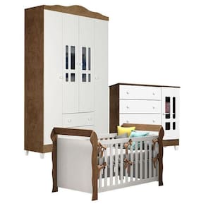 Quarto de Bebê Ariel 4 Portas e Berço Lara Branco Acetinado Amadeirado Carolina