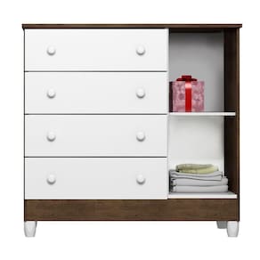Para as mamães que pensam no agora e no amanhã, um berço que também serve como mini-cama e mini-sofá acompanha o desenvolvimento do seu pequeno por muito mais tempo e com muito amor. A cômoda fraldário com seu sistema de trava anti-tombamento complementa o dormitório. Estes produtos se encontram disponíveis nas cores Branco Brilho e Branco Fosco com Amadeirado.