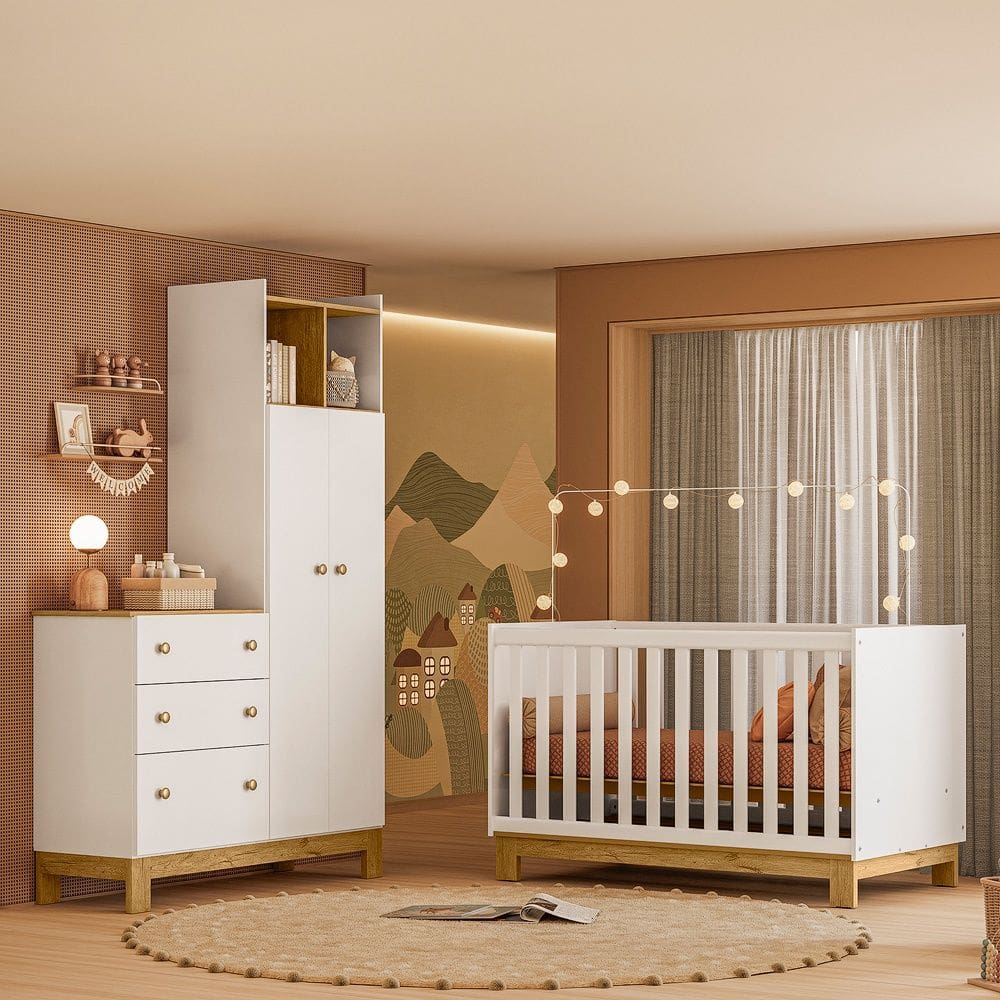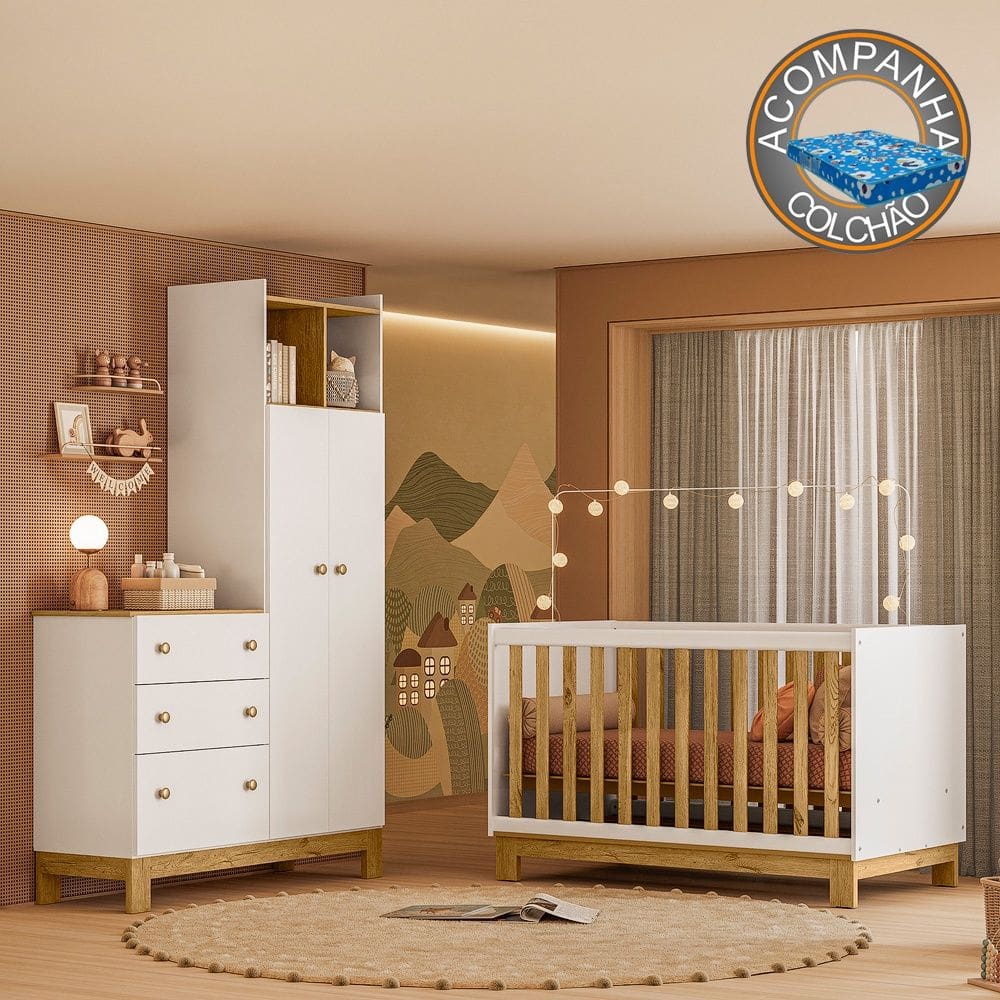 quarto de bebe berco colonial amore comoda e guarda roupa branco qmovi