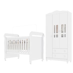 Estilo Marquesa: charme clássico com um toque de sofisticação Acompanha Colchão: Não Acompanha Manual de Instalação: Sim Acompanha Suporte para Mosquiteiro: Sim - Sem Véu Altura do Conjunto: 198 cm Ambiente Principal: Quarto de Bebê Certificado: 009413/2022 Certificado INMETRO (código): 009413/2022 codigo_ean: 7900288256324 Complexidade da Montagem: Baixa: pode ser montado por uma pessoa sozinha Cor: Branco Cor do Produto: Branco Cor Interna: Branco Escala de Brilho: Fosco Estrado com Regulagem de Altura: Sim Estrado Regulável em Quantas Posições: 02 Formato da Janela da Porta: Retângulo Largura do Conjunto: 154 cm Linha ou Coleção: Mirelle Manual de Montagem e Instalação: https://product-hub-prd.madeiramadeira.com.br/855885964/documents/d4515075-def0-4a24-bbfc-a926eb21ae5b325660964017594259514556.pdf Marca: Carolina Baby Material da Gaveta: MDF Material da Porta: MDF Material da Prateleira: MDF Material do Estrado: MDF Material do Fundo: MDF Material Principal: MDF Medida de Cada Item: Berço: 154cm x 76cm x 115cm Guarda Roupa: 94 cm x 40 cm x 198cm modular: Não Necessita Montagem: Sim Origem do Produto: Nacional Peso: Guarda Roupa: 49 Kg, Berço: 38,2 Kg Peso de Cada Item: Guarda Roupa: 48 Kg, Berço: 38 Kg Pintura Atóxica: Sim Porta Janelada: Sim Possui Certificado: Sim Possui Espelhos: Não Possui Gavetas: Sim Possui Grade: Sim Possui Portas: Sim Possui Prateleiras: Sim Possui Rodízio: Sim Profundidade do Conjunto: 76 cm Quantidade de Gavetas: 02 Quantidade de Prateleiras: 03 Recomendações de Uso, Manutenção e Limpeza: Limpar com pano seco Sistema de Montagem: Parafuso Tamanho do Colchão Indicado (L x C): 70 x 130 cm Tipo de Corrediça da Gaveta: Metálica Telescópica Tipo de Dobradiça/Corrediça da Porta: Metálica Tipo de Estrado: Fixo Tipo de Grade: Fixa Tipo de Guarda-Roupa: Infantil