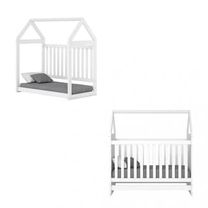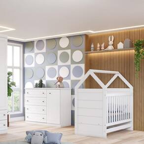 O quartinho conta com uma cômoda no mesmo estilo americano, possui 4 amplas gavetas e 1 porta com 2 prateleiras para organizar itens maiores. O Berço 2 em 1, que se transforma em cama, no estilo casinha montessoriana, fica próxima ao chão, proporcionando maior acessibilidade à criança. Foi projetado para desenvolver e estimular a autonomia da criança de forma segura para que ela se sinta à vontade para explorar seu espaço. O Berço é 100 MDF, possui estrutura robusta e durável. A segurança também é outro destaque, pois está certificado e aprovado conforme normas do Inmetro!