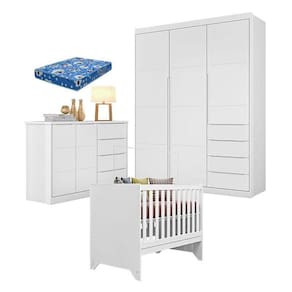 Quarto de Bebê Blenda com Berço Americano Maya Branco Acetinado com Colchão Ortobom - Phoenix Baby
