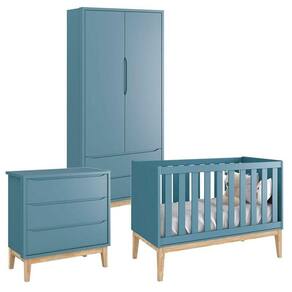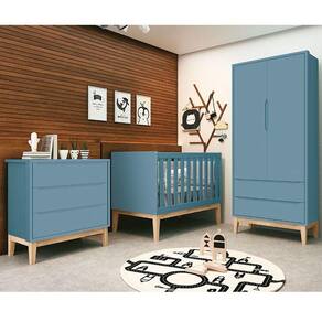 Quarto de Bebê Classic 2 Portas Azul com Pés Madeira Natural Reller
