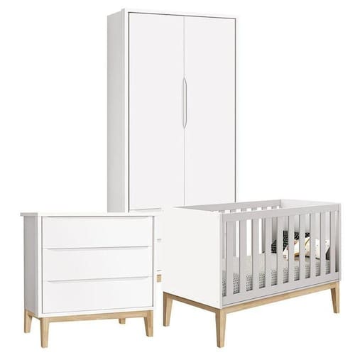 Quarto de Bebê Classic 2 Portas Branco com Pés Madeira Natural ? Reller