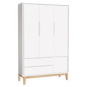 Guarda Roupa Infantil New Classic 3 Portas Branco com Pés Madeira Natural Reller