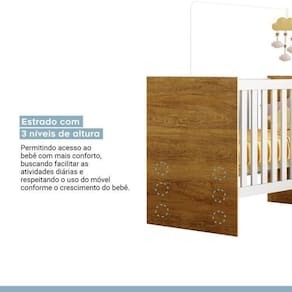 Receba seu bebê em um espaço de sonhos com nosso conjunto completo para quarto de bebê. Com um berço macio e seguro, uma cômoda funcional e detalhes encantadores, cada peça é projetada para proporcionar conforto e praticidade. Adicione um toque de ternura ao ambiente e crie memórias preciosas em um espaço cuidadosamente planejado para o seu pequeno. Acompanha Colchão: Não Altura do Conjunto: 89 cm Ambiente: null Ambiente Principal: Quarto de Bebê Cor: Branco/Madeirado Ypê Estrado com Regulagem de Altura: Não Informação Complementar: 1x Cômoda Infantil 100% MDF 1 Porta 3 Prateleiras Flocos Branco/Madeirado Ypê Largura: 67 cm Altura: 80,5 cm Peso: 19,39 kg Profundidade: 41 cm Necessita Montagem: Sim