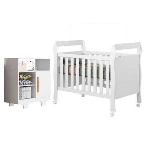 Celebre a chegada do seu bebê com nosso conjunto completo para o quarto de bebê. Com um berço aconchegante, uma cômoda espaçosa e detalhes encantadores, este conjunto oferece conforto e funcionalidade em cada peça. Crie um ambiente acolhedor e charmoso para seu bebê crescer e explorar, sem comprometer a praticidade. Prepare-se para momentos preciosos neste espaço cuidadosamente projetado. Acompanha Colchão: Não Altura do Conjunto: 111 cm Ambiente: null Ambiente Principal: Quarto de Bebê Cor: Branco Estrado com Regulagem de Altura: Sim Informação Complementar: 1x Cômoda Infantil 100% MDF 1 Porta 3 Prateleiras Flocos Branco Largura: 67 cm Altura: 80,5 cm Peso: 19,39 kg Profundidade: 41 cm Necessita Montagem: Sim