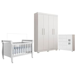 Transforme o quarto do seu bebê em um espaço encantador e funcional com nosso conjunto completo! Com um berço confortável para ninar seu pequeno, uma cômoda espaçosa para organizar roupas e acessórios, e um guarda-roupa prático para manter tudo em ordem, este conjunto é a escolha perfeita para pais que buscam praticidade e estilo. Garanta o conforto e a praticidade que seu bebê merece! Altura do Conjunto: 220 cm Ambiente: null Ambiente Principal: Quarto de Bebê Cor: Branco Estrado com Regulagem de Altura: Sim Informação Complementar: 1x Cômoda de Bebê 100% MDF 1 Porta 4 Gavetas Life Branco Largura: 94 cm Altura: 96 cm Peso: 32,5 kg Profundidade: 39 cm Necessita Montagem: Sim