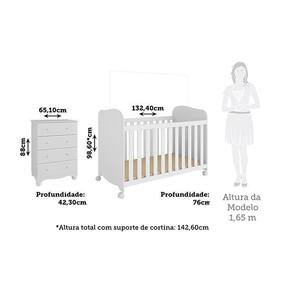 Crie um ambiente encantador e funcional com este quarto de bebê completo 100% MDF, desenvolvido para oferecer segurança, conforto e estilo. O berço certificado pelo INMETRO possui regulagem de altura facilitando o acesso ao bebê. A cômoda possui corrediças telescópicas que garantem abertura suave e durabilidade nas gavetas e interno com 1 cabideiro metálico para maximizar a organização da sua rotina. Com design clássico moderno e acabamento delicado, o conjunto traz um toque de leveza e elegância ao espaço infantil.