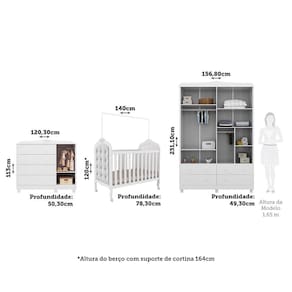 Medida de Cada Item: Berço com Capitonê: 120cm x 140cm x 78,30cm | Guarda-Roupa: 231,10cm x 156,80cm x 49,30cm |Cômoda: 113cm x 120,30cm x 50,30cm (A x L x P)
