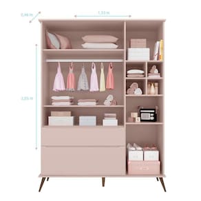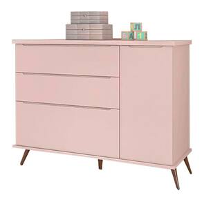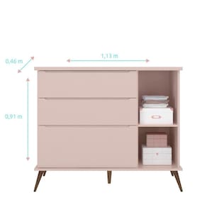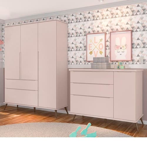 Quarto de Bebê Cômoda Infantil e Guarda Roupa Infantil 3 Portas e 2 Gavetas Melissa Retrô 100% MDF Cor Rosê - Phoenix