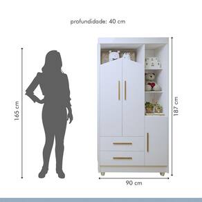 Dimensões do Guarda Roupa Altura: 187cm Largura: 90cm Profundidade: 40cm Peso: 58,8 kg