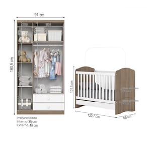 - Acompanha: 1 Guarda Roupa + 1 Berço + Kit Ferragens + Manual de Montagem