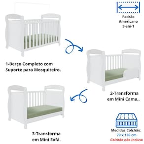 O Berço Marquesa é um produto versátil, 3 em 1, que vira Mini Cama e Mini Sofá.