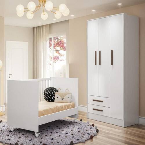 Berço Mini Cama Doce Sonho Qmovi, certificado pelo INMETRO é produzido pensando na beleza, aconchego em noites tranquilas de seu bebê, com três regulagens de altura do estrado. O Guarda Roupa foi projetado especialmente para quem precisa de um móvel espaçoso e funcional para o quarto do filho. Com um design encantador, ele deixará o ambiente ainda mais charmoso e aconchegante. Recomendações de Uso, Manutenção e Limpeza: Não utilize produtos químicos ou abrasivos para limpar seus móveis. A manutenção em geral, exige apenas a retirada do pó com um pano seco. Mas, a limpeza também pode ser feita utilizando um pano levemente umedecido com água e/ou álcool. Em seguida, a superfície deve ser seca com a ajuda de um pano limpo e macio. Não expor o produto diretamente à luz solar.