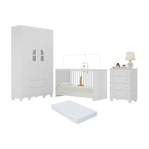 Conteúdo da Embalagem: 1 (um) Berço 1 (um) Colchão 1 (um) Guarda-roupa 1 (uma) Cômoda Manual de Montagem Kit Ferragem