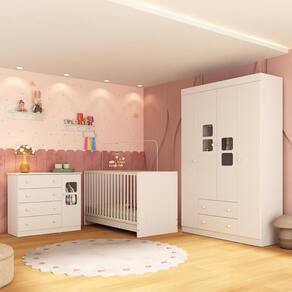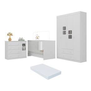 Quarto de Bebê Completo com Berço 3 em 1 com Colchão Incluso Brisa Multimóveis MP4533 - Branco