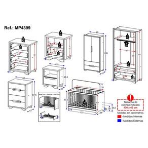 *O produto será entregue desmontado e não disponibilizamos o de montagem. Acabamento: Pintura UV | Tonalidade: Branco | Material: MDP | Referência do Modelo: MP4399 | Coleção: Favo de | Sistema de Montagem: O produto acompanha manual de montagem juntamente com kit ferragem. O produto será entregue desmontado e não disponibilizamos o de montagem. | Instruções de Cuidado: Limpar com pano seco para retirar o pó. Não utilizar produtos químicos ou abrasivos. Não aplicar lustra móveis. | Produto Composto por: 1 berço, 1 guarda-roupa, 1 cômoda, 1 mesa de cabeceira, manual de montagem e kit ferragem. | Altura Montado: 189 | Largura Montado: 95 | Profundidade Montado: 47 | Tamanho (L x A x P): 95 x 189 x 47 | Peso do Produto: 146 | Corrediça: Telescópica | Inclui Berço: Sim | Acompanha Colchão: Não | Inclui Guarda-Roupa: Sim | Inclui Gaveteiro: Sim | Material do Puxador: Madeira | Quantidade de Portas: 2 | Quantidade de Gavetas: 7 | Quantidade de Puxadores: 9 | RBN: 17352335011 | Quantidade de Pés: 12 | Quantidade de Peças: 4 | Material dos Pés: Madeira | Produto: Conjunto de Quarto | Portátil: Não | Registro INMETRO: 0000085/2018 | Fabricante: Multimóveis | Regulamentado pelo INMETRO: Sim | Garantia do Fabricante: 3 | Requer Montagem: Sim | Altura do Produto com Embalagem: 72 | Largura do Produto com Embalagem: 76 | Comprimento do Produto com Embalagem: 189 | Peso do Produto com Embalagem: 146 | Nome do Produto no Fornecedor: Quarto de Bebê Completo com Berço 3 em 1 para Colchão 130x60cm Multimóveis MP4399 Branco/Natural | Estado de Origem: RS | Produto precisa de Montagem?: Sim, sugerimos a contratação do nosso de montagem (para os CEPs em que o está disponível) ou de algum experiente de sua preferência | Tempo de Garantia: 3 meses | Descrição do Tamanho: (L x A x P): 95 x 189 x 47 cm | Tipo de cama: Berço | Marca: Multimóveis | Tamanho da cama: Berço | Quantidade de mudos: 1 | Tipo de madeira: N/A | Comprimento da cama: 66 cm | Altura da cama: 80,5 cm | É Kit de : Sim | Estilo: Moderno | Largura da cama: 133 cm | Idade recomendada: 0-24 meses | Idade: Bebê | Quantidade de caixas de embalagem: 05 | Destaque 1: Produzido em MDP com acabamento acetinado: durabilidade e resistência. | Destaque 2: Berço 3 em 1: transforma-se em sofá e minicama, acompanhando as fases da criança. | Destaque 3: Tamanho do colchão indicado: 130 x 60cm (não incluso). | Destaque 4: Guarda-roupa com 2 portas e 2 gavetas, cômoda com 4 gavetas e mesa de cabeceira com 1 gaveta: amplo espaço interno. | Destaque 5: Corrediças telescópicas: abertura total e silenciosa das gavetas. | Baterias são necessárias?: Não | Certificação de teste externa: 0000085/2018 | Is Fragile: Não | Dimensões do item P x L x A: length#value=47;length#unit=centimeters;width#value=95;width#unit=centimeters;height#value=189;height#unit=centimeters | Quantidade de itens: 1 | Peso do item: unit=kilograms;value=146 | da peça: | Inclui manual de montagem: Sim | Tipo de Garantia: Garantia do Fabricante | Montagem: Necessita Montagem | País de Origem: | Palavras-chave: berco com colchao, berco pequeno bercos moveis, berco que vira cama, berco mini cama, berco, quarto completo de bebe, berco e guarda roupa, kit quarto bebe, quarto de bebe completo, quarto de bebe, quarto bebe, jogo de quarto bebe, quarto completo bebe, kit quarto bebe moveis, quarto infantil bebe, kit quarto de bebe, berço e guarda roupa | Inclui cômoda trocador: Não Cor: Branco/Natural