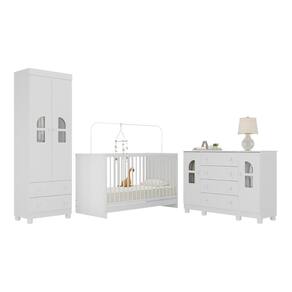 Diferenciais: - 3 anos de garantia contra defeitos de fabricação e material. - Conjunto produzido em madeira de reflorestamento (MDP/MDF 12/15mm) com acabamento acetinado (cerca de 20% de brilho): sustentabilidade e durabilidade. - Berço 3 em 1 que se transforma em sofá e minicama, acompanhando o crescimento do bebê. - Lastro em madeira com 3 regulagens de altura e suporte para mosquiteiro para noites mais tranquilas e protegidas. - Berço certificado pelo INMETRO (Selo n 000332/2025). - Padrão nacional (tamanho do colchão indicado: 130x60cm). Colchão não incluso. - Frentes (guarda-roupa e cômoda) produzidas em MDF. - Guarda-roupa com 2 portas e 2 gavetas: amplo espaço para organizar roupinhas e acessórios. - Cômoda com 2 portas e 4 gavetas. - Detalhes de vidro incolor temperado 3mm nas portas: toque charmoso que permite visualizar o interior dos móveis. - Corrediças telescópicas: abertura total e silenciosa das gavetas. - Cabideiro em alumínio: permite acomodar roupas longas e curtas para que não amassem. - Puxadores em ABS delicados e práticos. - Pés em polipropileno e rodapés: visual elegante e estabilidade para o guarda-roupa e a cômoda. - Sistema antitombamento no guarda-roupa e cômoda: proporciona segurança para o bebê e tranquilidade aos pais.