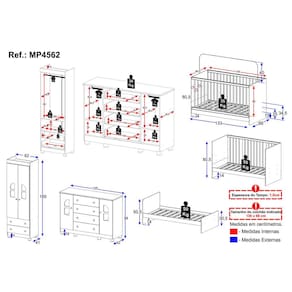 Conteúdo da Embalagem: 1 (um) Berço 1 (um) Guarda-roupa 1 (uma) Cômoda Manual de Montagem Kit Ferragem