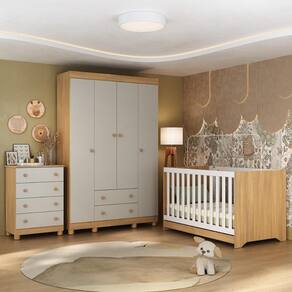 Quarto de Bebê Completo com Berço Americano 3 em 1 Colchão Incluso Allegra Multimóveis MP4602 - Madeirado | Off White
