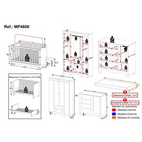Conteúdo da Embalagem: 1 (um) Berço 1 (um) Colchão 1 (um) Guarda-roupa 1 (uma) Cômoda Manual de Montagem Kit Ferragem