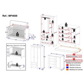 Conteúdo da Embalagem: 1 (um) Berço 1 (um) Colchão 1 (um) Guarda-roupa 1 (uma) Cômoda Manual de Montagem Kit Ferragem