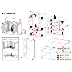 Conteúdo da Embalagem: 1 (um) Berço 1 (um) Colchão 1 (um) Guarda-roupa 1 (uma) Cômoda Manual de Montagem Kit Ferragem