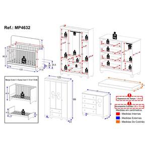 Conteúdo da Embalagem: 1 (um) Berço 1 (um) Colchão 1 (um) Guarda-roupa 1 (uma) Cômoda Manual de Montagem Kit Ferragem