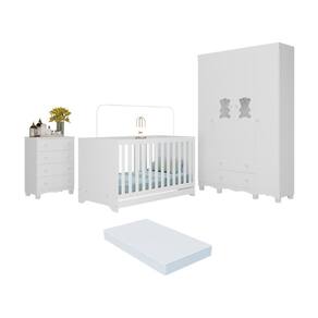 Quarto de Bebê Completo com Berço Americano 3 em 1 Colchão Incluso Ternura Multimóveis MP4667 - Branco