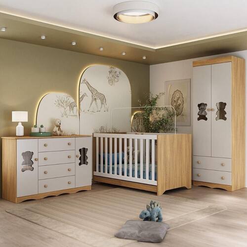 Quarto de Bebê Completo com Berço Americano 3 em 1 Doçura Multimóveis MP4658 - Madeirado | Off White