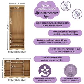 - Sistema antitombamento no guarda-roupa e cômoda: proporciona segurança para o bebê e tranquilidade aos pais.