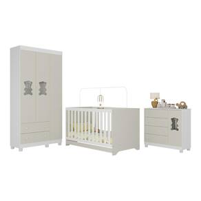 Diferenciais: - 3 anos de garantia contra defeitos de fabricação e material. - Conjunto produzido em madeira de reflorestamento (MDP 12/15mm) com acabamento acetinado (cerca de 20% de brilho): sustentabilidade e durabilidade. - Berço 3 em 1 que se transforma em sofá e minicama, acompanhando o crescimento do bebê. - Lastro em madeira com 3 regulagens de altura e suporte para mosquiteiro para noites mais tranquilas e protegidas. - Berço certificado pelo INMETRO (Selo n 0000085/2018). - Padrão americano (tamanho do colchão indicado: 130x70cm). Colchão não incluso. - Grade Soft (PVC): ecologicamente correta, com matéria-prima livre de metais pesados, atóxica e com proteção antiamarelamento. - Guarda-roupa com 3 portas e 2 gavetas: amplo espaço para organizar roupinhas e acessórios. - Cômoda com 1 porta e 4 gavetas. - Portas e gavetas produzidas em MDF. - Detalhes de vidro incolor temperado 3mm nas portas: toque charmoso que permite visualizar o interior dos móveis. - Corrediças telescópicas: abertura total e silenciosa das gavetas. - Cabideiro em alumínio: permite acomodar roupas longas e curtas para que não amassem. - Puxadores em ABS delicados e práticos. - Pés em polipropileno e rodapés: visual elegante e estabilidade para o guarda-roupa e a cômoda. - Sistema antitombamento no guarda-roupa e cômoda: proporciona segurança para o bebê e tranquilidade aos pais.
