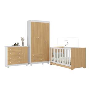 Diferenciais: - 3 anos de garantia contra defeitos de fabricação e material. - Conjunto produzido em madeira de reflorestamento (MDP 12/15mm) com acabamento acetinado (cerca de 20% de brilho): sustentabilidade e durabilidade. - Berço 3 em 1 que se transforma em sofá e minicama, acompanhando o crescimento do bebê. - Lastro em madeira com 3 regulagens de altura e suporte para mosquiteiro para noites mais tranquilas e protegidas. - Berço certificado pelo INMETRO (Selo n 0000085/2018). - Padrão americano (tamanho do colchão indicado: 130x70cm). Colchão não incluso. - Grade Soft (PVC): ecologicamente correta, com matéria-prima livre de metais pesados, atóxica e com proteção antiamarelamento. - Guarda-roupa com 3 portas e 2 gavetas: amplo espaço para organizar roupinhas e acessórios. - Cômoda com 1 porta e 4 gavetas. - Corrediças telescópicas: abertura total e silenciosa das gavetas. - Cabideiro em alumínio: permite acomodar roupas longas e curtas para que não amassem. - Puxadores em ABS delicados e práticos. - Pés em polipropileno e rodapés: visual elegante e estabilidade para o guarda-roupa e a cômoda. - Sistema antitombamento no guarda-roupa e cômoda: proporciona segurança para o bebê e tranquilidade aos pais.